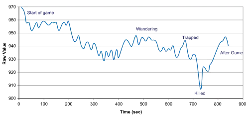 Affective video games can access their players' emotional states through biofeedback devices.[53] A particularly simple form of biofeedback is available through gamepads that measure the pressure with which a button is pressed: this has been shown to correlate strongly with the players' level of arousal;[54] at the other end of the scale are brain–computer interfaces.[55][56] Affective games have been used in medical research to support the emotional development of autistic children.[57]