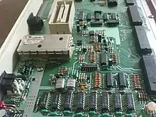 POKEY is a custom chip used for reading the keyboard, generating sound and serial communications (in conjunction with the Peripheral Interface Adapter chip) commands and IRQs, plus controlling the 4 joystick movements on the 400 and 800 models, and later RAM banks or ROM (OS/BASIC/Self-test) enables for XL/XE lines.[70] It provides timers, a random number generator for generating acoustic noise and random numbers, and maskable interrupts. POKEY has four semi-independent audio channels, each with its own frequency, noise and volume control. Each 8-bit channel has its own audio control register which select the noise content and volume. For higher sound frequency resolution (quality), two of the audio channels can be combined for more accurate sound (frequency can be defined with 16-bit value instead of usual 8-bit). The name POKEY comes from the words "POtentiometer" and "KEYboard", which are two of the I/O devices that POKEY interfaces with (the potentiometer is the mechanism used by the paddle). The POKEY chip—and its dual- and quad-core versions—was used in many Atari coin-op arcade machines of the 1980s, including Centipede and Millipede,[71] Missile Command, Asteroids Deluxe, Major Havoc, and Return of the Jedi.
