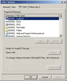 The action taken with Audio CDs and Movie DVDs essentially considers both types of media as if they were files; Explorer then simply performs the default action associated with that file type. File types and the actions associated with them can be viewed and changed from within any Explorer folder from the "File Types" tab of the "Tools/Folder Options" menu. They are stored in the Registry under HKEY_CLASSES_ROOT.
