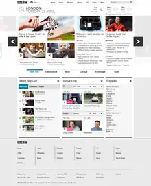 One of the most used aspects of the BBC Online website are the sections relating to News content, Sports results and news and Weather forecasts. The BBC News Online subsite launched in 1997 and received around 2 billion page views each month in 2012.[28] The site contains journalistic content from the BBC covering news from the UK, both as a whole as well as regional news from the BBC Nations and Regions, and International content. The site also contains analysis from correspondents and other features from the Magazine section of the website. The BBC Sport Online subsite offers, in a similar way to news, a wide variety of material including sports results, live feeds to on-air programming, sports related news and analysis from commentators and pundits.[29] The BBC Weather subsite primarily focuses on weather forecasts for UK and International locations, but also includes other features including Country guides that detail to geography and climate of each country, winter sports forecasts and during times of unusual or extreme weather, videos are produced explaining the causes for this weather.[30]
