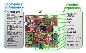 - "High performance and numerous expansion options". OMAP3530 BeagleBoard. Digi-Key. May 27, 2009. Archived from the original on May 21, 2010. Retrieved February 4, 2010.