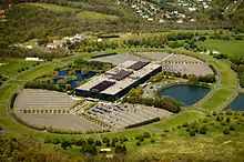 Bell's Holmdel research and development lab, a 1,900,000-square-foot (180,000 m2) structure set on 473 acres (191 ha), was closed in 2007. The mirrored-glass building was designed by Eero Saarinen. In August 2013, Somerset Development bought the building, intending to redevelop it into a mixed commercial and residential project. A 2012 article expressed doubt on the success of the newly named Bell Works site,[18] but several large tenants had announced plans to move in through 2016 and 2017.[19][20]
