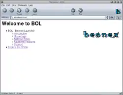 Beonex Launcher (BeOL, spoken B-O-L), was an additional upcoming product that never left alpha status; it was a stripped-down version of Beonex Communicator: a Web browser combined with an email client and a chat client.[19]