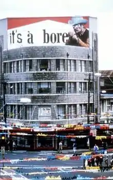 Billboard hacking started when commercial messages appeared in public space. In the first centuries BC, inscriptions promoting gladiatorial battles on the houses of the wealthiest in Pompeii commonly encountered passers-by who would inscribe their own humorous or insulting responses.[4] The commercialisation of paint markers and spray paint in the 1960s helped popularise the practice. During May 1968 protests in Paris, protesters wrote over billboards to give voice to their messages.[5]