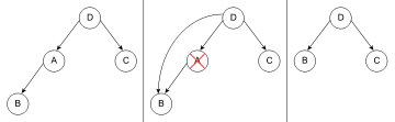 Deletion is the process whereby a node is removed from the tree. Only certain nodes in a binary tree can be removed unambiguously.[31]