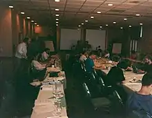 Stroustrup (standing on left) at the March 1996 Santa Cruz meeting of the C++ Standards Committee