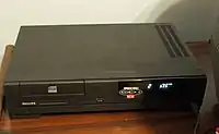 ![]() Philips CDI 910, the first consumer-oriented CD-i player, pictured with its "Touchpad" game controller | |