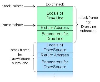 DrawLinestack frame, an address intoDrawSquare's code); and - space for the local variables of the routine (if any).