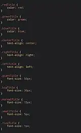 Cascading Style Sheets (CSS) is a style sheet language used for specifying the presentation and styling of a document written in a markup language such as HTML or XML (including XML dialects such as SVG, MathML or XHTML).[1] CSS is a cornerstone technology of the World Wide Web, alongside HTML and JavaScript.[2]
