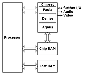 In home computers, game consoles, and arcade hardware of the 1980s and 1990s, the term chipset was used for the custom audio and graphics chips. Examples include the Original Amiga chipset and Sega's System 16 chipset.