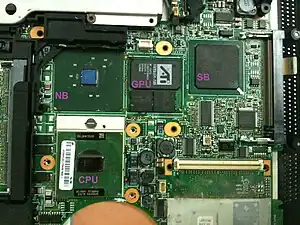 In x86-based personal computers, the term chipset often refers to a specific pair of chips on the motherboard: the northbridge and the southbridge. The northbridge links the CPU to very high-speed devices, especially RAM and graphics controllers, and the southbridge connects to lower-speed peripheral buses (such as PCI or ISA). In many modern chipsets, the southbridge contains some on-chip integrated peripherals, such as Ethernet, USB, and audio devices.