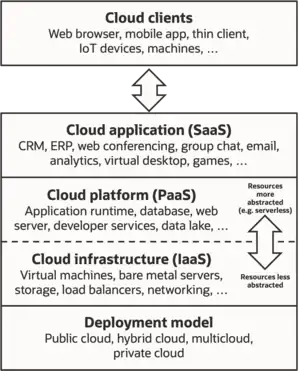 The service-oriented architecture (SOA) promotes the idea of "Everything as a Service" (EaaS or XaaS, or simply aAsS).[46] This concept is operationalized in cloud computing through several service models as defined by the National Institute of Standards and Technology (NIST). The three standard service models are Infrastructure as a Service (IaaS), Platform as a Service (PaaS), and Software as a Service (SaaS).[5] They are commonly depicted as layers in a stack, providing different levels of abstraction. However, these layers are not necessarily interdependent. For instance, SaaS can be delivered on bare metal, bypassing PaaS and IaaS, and a program can run directly on IaaS without being packaged as SaaS.