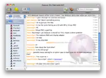 Colloquy is an open-source IRC, SILC, ICB and XMPP[2] client for Mac OS X. Colloquy uses its own core, known as Chat Core, although in the past it used Irssi as its IRC protocol engine. One of the primary goals behind Colloquy was to create an IRC, SILC and ICB client with Mac OS X visuals. Colloquy contains a user interface that follows Apple's Human interface guidelines in addition to containing support for traditional IRC command-line controls such as /nick and /join.