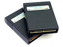 The C64's designers intended the computer to have a new, wedge-shaped case within a year of release, but the change did not occur.[6] In 1986, Commodore released the 64C computer, which is functionally identical to the original. The exterior design was remodeled in the sleeker style of the Commodore 128.[48] The 64C uses new versions of the SID, VIC-II, and I/O chips being deployed. Models with the C64E board had the graphic symbols printed on the top of the keys, instead of the normal location on the front. The sound chip (SID) was changed to use the MOS 8580 chip, with the core voltage reduced from 12V to 9V. The most significant changes include different behavior in the filters and in the volume control, which result in some music/sound effects sounding differently than intended, and in digitally-sampled audio being almost inaudible, respectively (though both of these can mostly be corrected-for in software). The 64 KB RAM memory went from eight chips to two chips. BASIC and the KERNAL went from two separate chips into one 16 KB ROM chip. The PLA chip and some TTL chips were integrated into a DIL 64-pin chip. The "252535-01" PLA integrated the color RAM as well into the same chip. The smaller physical space made it impossible to put in some internal expansions like a floppy-speeder.[73] In the United States, the 64C was often bundled with the third-party GEOS graphical user interface (GUI)-based operating system, as well as the software needed to access Quantum Link. The 1541 drive received a matching face-lift, resulting in the 1541C. Later, a smaller, sleeker 1541-II model was introduced, along with the 800 KB[74] 3.5-inch microfloppy 1581.