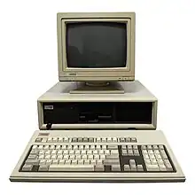 ![]() A Deskpro 386 with monitor and peripherals; the Deskpro 386 was the first personal computer to feature an 80386 microprocessor. | |