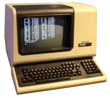 A computer terminal is an electronic or electromechanical hardware device that can be used for entering data into, and transcribing[1] data from, a computer or a computing system.[2] Most early computers only had a front panel to input or display bits and had to be connected to a terminal to print or input text through a keyboard. Teleprinters were used as early-day hard-copy terminals[3][4] and predated the use of a computer screen by decades. The computer would typically transmit a line of data which would be printed on paper, and accept a line of data from a keyboard over a serial or other interface. Starting in the mid-1970s with microcomputers such as the Sphere 1, Sol-20, and Apple I, display circuitry and keyboards began to be integrated into personal and workstation computer systems, with the computer handling character generation and outputting to a CRT display such as a computer monitor or, sometimes, a consumer TV, but most larger computers continued to require terminals.