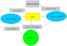 Testing the design ideas with paper prototypes or even with more sophisticated interactive prototypes before the implementation phase helps the designers communicate with users about the new system and develop the design further. Prototypes test the structure of a User Environment Design and initial user interface ideas, as well as the understanding of the work, before the implementation phase.[2] Depending on the results of the prototype test, more iterations or alternative designs may be needed.
