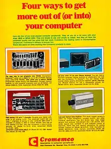 Cromemco called themselves “Specialists in Computer Peripherals” and had a reputation for innovative designs and quality construction.[14] They were, however, just a few steps away from offering their own computer system based on the Altair computer bus structure, named by Garland and Melen the "S-100 bus".[15][16]