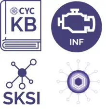 ![]() Clockwise: Logos for Cyc's Knowledge Base, Inference Engines, Actionable Output, Intelligent Data Selection | |