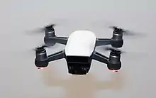 Released in May 2017, the Spark (晓) features a 12-megapixel camera stabilized mechanically by a 2-axis gimbal. The Spark also carries an advanced infrared 3D camera that helps the drone detect obstacles in front of it as well as facilitate hand-gesture control. In addition to a smartphone app with a virtual controller, a physical controller can also be bought.[40]