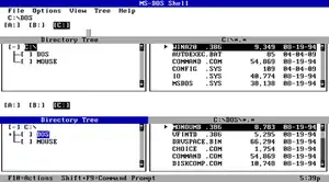 DOS Shell is a file manager that debuted in MS-DOS and PC DOS version 4.0, released in June 1988. It was no longer included in MS-DOS version 6, but remained part of the Supplemental Disk. The Supplemental Disk could be ordered or could be downloaded through Microsoft's FTP server. DOS Shell was retained in PC DOS until PC DOS 2000.