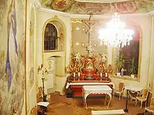 Construction of the historic country house was started in 1760 on the orders of Count Joseph Anton Damian Albert von Oettingen-Baldern and Soetern, its chapel was build in 1763.[2] A year after Count Joseph's death in 1778, his second wife, Maria Antonia von Walburg zu Zeil and Wurzach, married Prince Hermann Maria Friedrich Otto von Hohenzollern-Hechingen,[3] but she had to flee Schloss Dagstuhl in the face of advancing french revolutionary troops in 1792.[2]