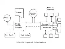 In 1962, Kemeny and Kurtz submitted a proposal for the development of a new time-sharing system to NSF (which was ultimately funded in 1964).[4] They had sufficient assurance that both Dartmouth and NSF would support the system that they signed a contract with GE and began preliminary work in 1963, before the proposal was funded.[5] In particular, they evaluated candidate computers from Bendix, GE, and IBM, and settled upon the GE-225 system paired with a DATANET-30 communications processor. This two-processor approach was unorthodox, and Kemeny later recalled:[6] "At that time, many experts at GE and elsewhere, tried to convince us that the route of the two-computer solution was wasteful and inefficient." In essence, the DATANET-30 provided the user-interface and scheduler, while user programs ran in the GE-225.