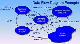 A data-flow diagram (DFD) is a graphical representation of the "flow" of data through an information system. It differs from the flowchart as it shows the data flow instead of the control flow of the program. A data-flow diagram can also be used for the visualization of data processing (structured design). Data-flow diagrams were invented by Larry Constantine, the original developer of structured design,[20] based on Martin and Estrin's "data-flow graph" model of computation.