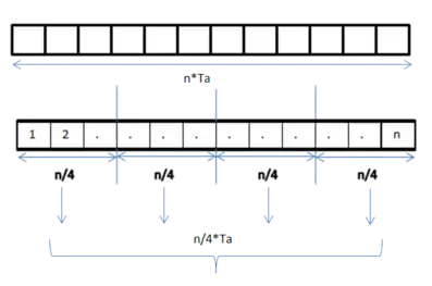 A data parallel job on an array of n elements can be divided equally among all the processors. Let us assume we want to sum all the elements of the given array and the time for a single addition operation is Ta time units. In the case of sequential execution, the time taken by the process will be n×Ta time units as it sums up all the elements of an array. On the other hand, if we execute this job as a data parallel job on 4 processors the time taken would reduce to (n/4)×Ta + merging overhead time units. Parallel execution results in a speedup of 4 over sequential execution. One important thing to note is that the locality of data references plays an important part in evaluating the performance of a data parallel programming model. Locality of data depends on the memory accesses performed by the program as well as the size of the cache.