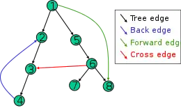 The result of a depth-first search of a graph can be conveniently described in terms of a spanning tree of the vertices reached during the search. Based on this spanning tree, the edges of the original graph can be divided into three classes: forward edges, which point from a node of the tree to one of its descendants, back edges, which point from a node to one of its ancestors, and cross edges, which do neither. Sometimes tree edges, edges which belong to the spanning tree itself, are classified separately from forward edges. If the original graph is undirected then all of its edges are tree edges or back edges.