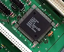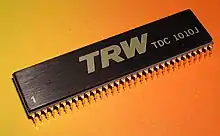 In 1978, American Microsystems (AMI) released the S2811.[3][4] The AMI S2811 "signal processing peripheral", like many later DSPs, has a hardware multiplier that enables it to do multiply–accumulate operation in a single instruction.[18] The S2281 was the first integrated circuit chip specifically designed as a DSP, and fabricated using vertical metal oxide semiconductor (VMOS, V-groove MOS), a technology that had previously not been mass-produced.[4] It was designed as a microprocessor peripheral, for the Motorola 6800,[3] and it had to be initialized by the host. The S2811 was not successful in the market.