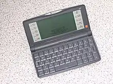 The user interface differed by device. The notebook computers had a windows, icons, menus, pointer (WIMP) graphical user interface (GUI). The handheld computers, which had smaller screens and no pointing device, accept input from a keyboard or a stylus.[7] On-screen, programmes were represented by icons, but on smaller devices a user could also access them via specialised buttons.
