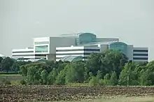 In 1992 the Plano EDS Headquarters campus comprising two eight-story buildings connected by an upper level bridge of office space was opened. The campus consists of 3,521,000 square feet (327,000 m²) of office and data center space on 270 acres (1.1 km²) of land. The campus included four Tier-IV data centers, a command center, four clusters of office buildings, a fitness center, a service station, four helipads and a hangar. It is the center of the 2,665 acre (11 km²) Legacy in Plano[14] real estate development, which EDS built.