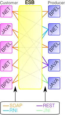 - Enterprise - the concept has been originally invented to reduce complexity of enterprise application integration within an enterprise; the restriction has become obsolete since modern Internet communication is no longer limited to a corporate entity