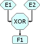 If either events E1 or E2 occur, function F1 starts