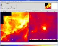 Image processing programs such as ImageJ, GIMP, Photoshop, PhotoLine, Chasys Draw IES, XnView and IrfanView can generally read simple FITS images, but frequently cannot interpret more complex tables and databases. Scientific teams frequently write their own code to interact with their FITS data, using the tools available in their language of choice. The FITS Liberator software is used by imaging scientists at the European Space Agency, the European Southern Observatory and NASA.[9] The SAOImage DS9 Astronomical Data Visualization Application[10] is available for many OSs, and handles images and headers.[11]