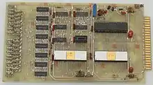 The Fairchild F8 is an 8-bit microprocessor system from Fairchild Semiconductor, announced in 1974 and shipped in 1975.[1][2] The original processor family included four main 40-pin integrated circuits (ICs); the 3850 CPU which was the arithmetic logic unit, the 3851 Program Storage Unit (PSU) which contained 1 KB of program ROM and handled instruction decoding, and the optional 3852 Dynamic Memory Interface (DMI) or 3853 Static Memory Interface (SMI) to control additional RAM or ROM holding the user programs or data. The 3854 DMA was another optional system that added direct memory access into the RAM controlled by the 3852.
