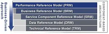The Service Component Reference Model (SRM) is a business and performance-driven, functional framework that classifies Service Components with respect to how they support business and/or performance objectives.[1] The SRM is intended for use to support the discovery of government-wide business and application Service Components in IT investments and assets. The SRM is structured across horizontal and vertical service domains that, independent of the business functions, can provide a leverage-able foundation to support the reuse of applications, application capabilities, components, and business services.