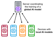 To ensure good task performance of a final, central machine learning model, federated learning relies on an iterative process broken up into an atomic set of client-server interactions known as a federated learning round. Each round of this process consists in transmitting the current global model state to participating nodes, training local models on these local nodes to produce a set of potential model updates at each node, and then aggregating and processing these local updates into a single global update and applying it to the global model.[3]