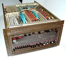 The AL1 is an 8-bit bit slice which contains eight registers and an arithmetic logic unit (ALU). It was implemented using four-phase logic and used over a thousand gates, with an area of 130 by 120 mils (3.3 mm by 3 mm). The chip was described in an April 1970 article in Computer Design magazine.[9][10] Although the AL1 was not called a microprocessor, or used as one at the time, it was later dubbed one in connection with litigation in the 1990s, when Texas Instruments claimed to have patented the microprocessor. In response, Lee Boysel assembled a system in which a single 8-bit AL1 was used as part of a courtroom demonstration computer system, together with ROM, RAM and an input-output device.[11][12] The AL1 is arguably the first microprocessor used in a commercial product (vs the Intel 4004, the first commercially available microprocessor).[13][14]