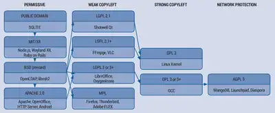| AGPLv3 | GPLv3 | GPLv2 | LGPLv3 | LGPLv2.1 | MPL-2 | BSD | |