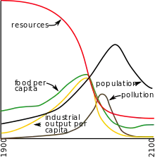Alvin & Heidi Toffler's bestseller Future Shock in 1970 generated mainstream attention for futures studies on the post-industrial economy. It popularized the metaphor of waves to describe the economic and social changes the United States was experiencing. The authors identified the first wave as agricultural society, the second wave as industrial society and the nascent third wave as information society.[35] In the 1970s, future studies focused less on Cold War scenarios and instead grappled on the impact of accelerated globalization. Pioneers of global future studies include Pierre Wack of Royal Dutch Shell, the Interfuture group at the Organisation for Economic Co-operation and Development (OECD) and the Club of Rome. The Club of Rome challenged the political status quo in 1972 with the report The Limits to Growth by putting computer simulations of economic growth alongside projections of population growth.[36]