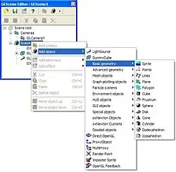 GLScene allows programmers to create OpenGL 3D objects at design-time using the interface shown. A wide range of objects and additional VCL controls are provided to help the programmer to build powerful 3D Delphi applications.