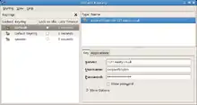 GNOME Keyring is a software application designed to store security credentials such as usernames,[2] passwords,[2] and keys, together with a small amount of relevant metadata. The sensitive data is encrypted and stored in a keyring file in the user's home directory. The default keyring uses the login password for encryption, so users don't need to remember another password.[3]