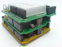 Another closely related type is the stackable connector for electronics, which typically has male pins on one surface and complementary female sockets on the opposite surface, allowing multiple units to be stacked up like plastic milk crates. Examples of this include stackable banana plugs, and interconnect cables specified for the IEEE-488 instrumentation bus. Stackable mezzanine bus connectors are used on some modular microcomputer accessory boards for systems such as the Arduino add-on daughterboards called "shields". The older PC/104 embedded PC modules use a similar stackable format for interconnection. Stackable connectors are not classified as hermaphroditic in the strictest sense, but are often described as such in looser usage.