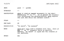 - "'Globbing' library routine". Archived from the original on 2007-12-19. Retrieved 2011-05-11.