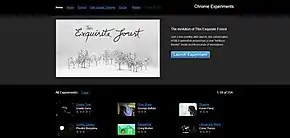 Google's Chrome Experiments was launched in March 2009 with 19 experiments.[1] The main reason for its inception was to demonstrate and test the abilities of JavaScript and Google's V8 JavaScript engine. Over time, it also started featuring other open-source web-based technologies such as HTML, Scalable Vector Graphics (SVG), WebGL, Web Audio, and the Canvas element. The focus of the project throughout has been on open-source technology and thus does not feature proprietary software such as Adobe Flash. The website is steadily gaining popularity along with the number of featured experiments. The number of experiments increased to 50 by August 2009,[2] to 100 by July 2010,[3] and to 500 by September 2012.[4] As of 2024, the number of experiments on the website exceeds 1,500.[5]