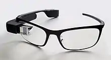 Google Glass, or simply Glass, is a brand of smart glasses developed and sold by Google. It was developed by X (previously Google X),[9] with the mission of producing a ubiquitous computer.[1] Google Glass displays information to the wearer using a head-up display.[10] Wearers communicate with the Internet via natural language voice commands.[11][12]
