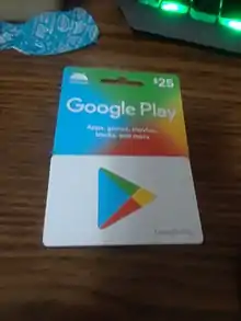 Google allows users to purchase content with credit or debit cards, carrier billing, gift cards, or through PayPal.[96] Google began rolling out carrier billing for purchases in May 2012,[11][97] followed by support for PayPal in May 2014.[98][99]