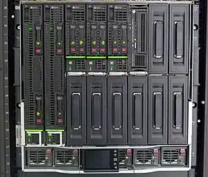 BladeSystem is a line of blade server machines from Hewlett Packard Enterprise (Formerly Hewlett-Packard) that was introduced in June 2006.[1][2][3]